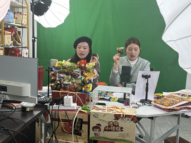 當(dāng)天,電商產(chǎn)業(yè)園內(nèi)的“直播大棚”人氣爆棚。主播們?cè)阽R頭前與消費(fèi)者展開互動(dòng),充滿激情地介紹各類商品,通過生動(dòng)的語言和直觀的展示,將商品的特點(diǎn)和優(yōu)勢傳達(dá)給觀眾,引導(dǎo)他們進(jìn)行購買,主播們還以抽獎(jiǎng)、送禮等方式增加直播的趣味和互動(dòng),吸引更多觀眾的參與。